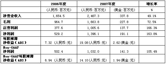 作为对遵照美国通用会计准则提交的未经审计的财务报表的补充,本财务报告提供了经调整的非美国通用会计准则净利润和每股ADS净收益,即将出售新浪股份的净收益和股票期权激励费用从美国通用会计准则数据中调整出。盛大公司相信提供非美国通用会计准则财务数据将加强投资者对盛大当前财务业绩和未来前景的总体理解,使得盛大的核心运营数据与以前年度更有可比性。这些数据应被视为对遵照美国通用会计准则编制的财务报告的补充,而不应被视为可代替或优于美国通用会计准则数据。